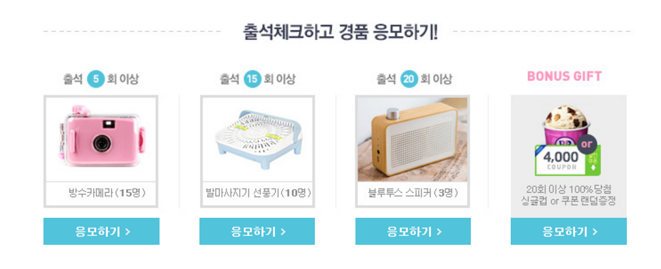 이틀전에 회원분이 출석이벤트 20일 이상하면 100% 베스킨 파인트 증정 이벤트 올려주셔서