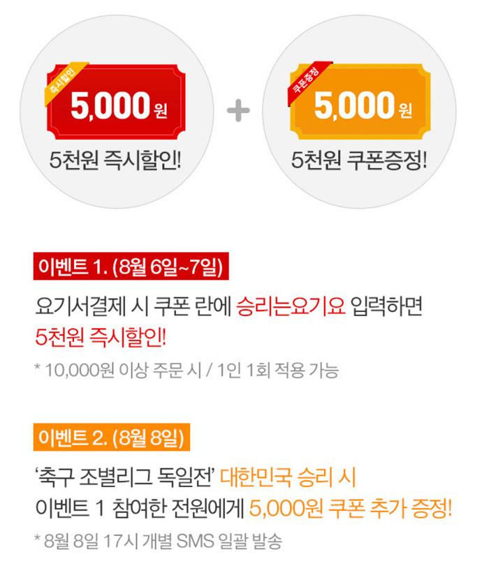 그리고 축구예선 독일전을 이기면 추가 5천원 쿠폰을...