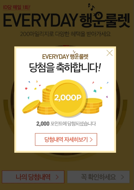 지금까지 가끔 돌려봤지만 2천포는 처음 당첨 되어보네요