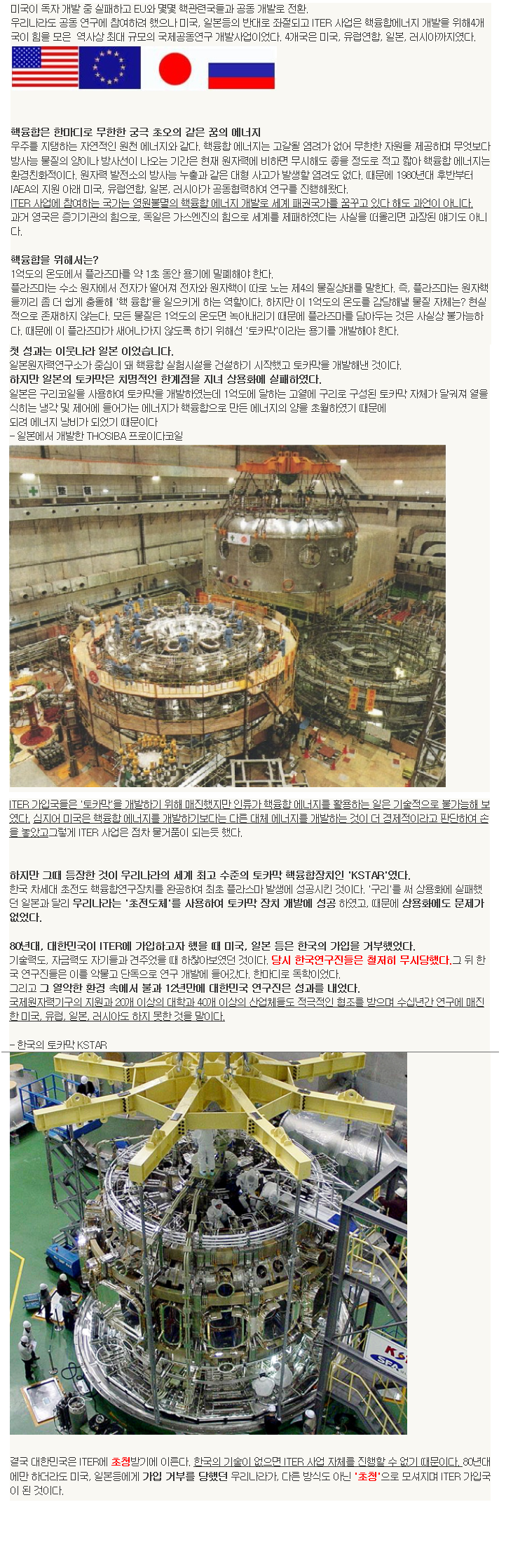 핵융합 장치는 한나라에서 해볼수 있는 규모가 아닙니다...