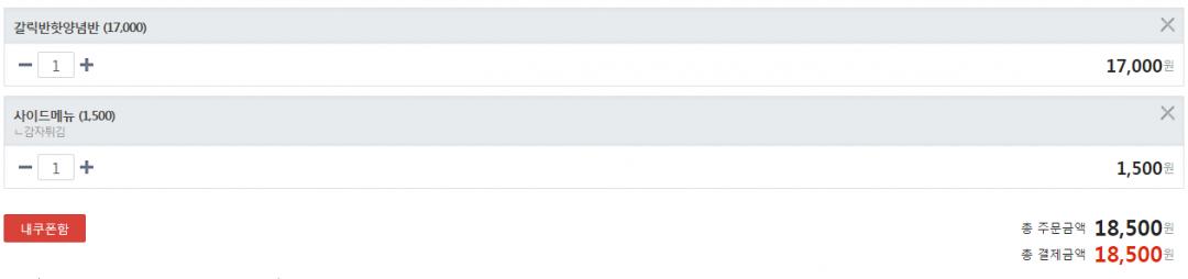 컬쳐 쿠폰까지 쓰려니 0원에는 결제가 안되어 사이드 감자까지 주문했습니다