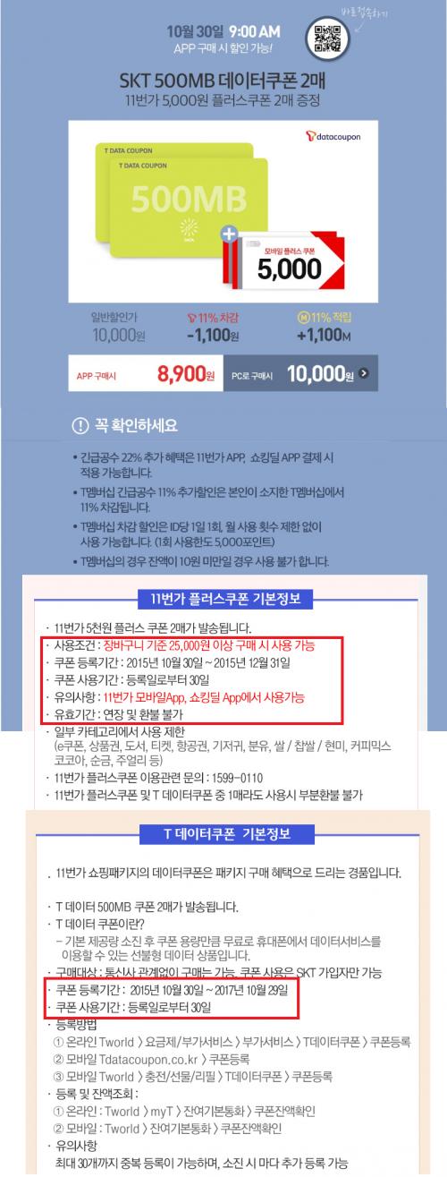 500mb 2장 + 5,000원 플러스쿠폰 2장
