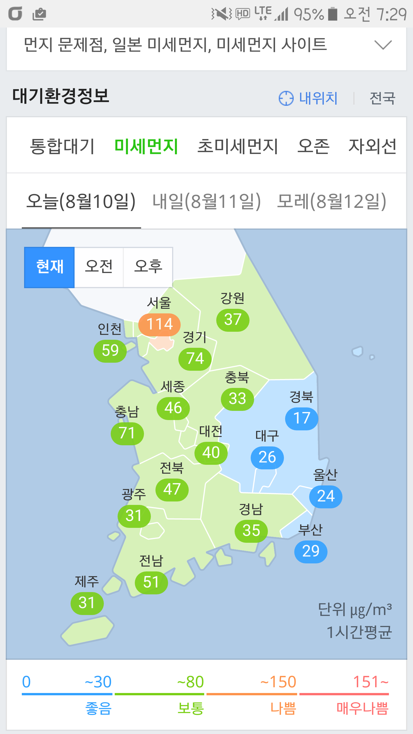 수도권만 나쁘니 중국발은 아닌거 같고 대기정체로 그렇다네요 | ||