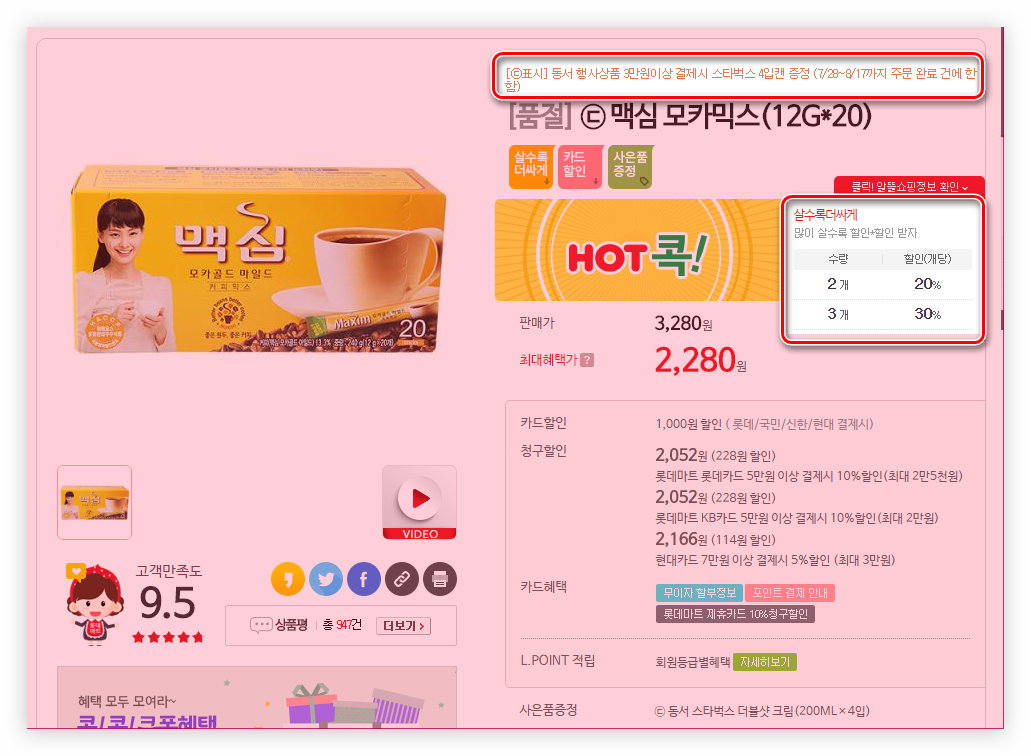 그리고 15개이상 구매시 스벅캔커피4개가 사은품...