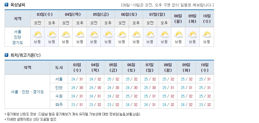 위 사진은 열흘전 서울 제 동네 중기예보로 미리 훑어본 대략적인 기온이고,