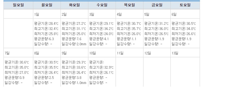 열흘전 예보 볼땐 최고기온이 32도라 별로 안 덥겠네 생각했는데
