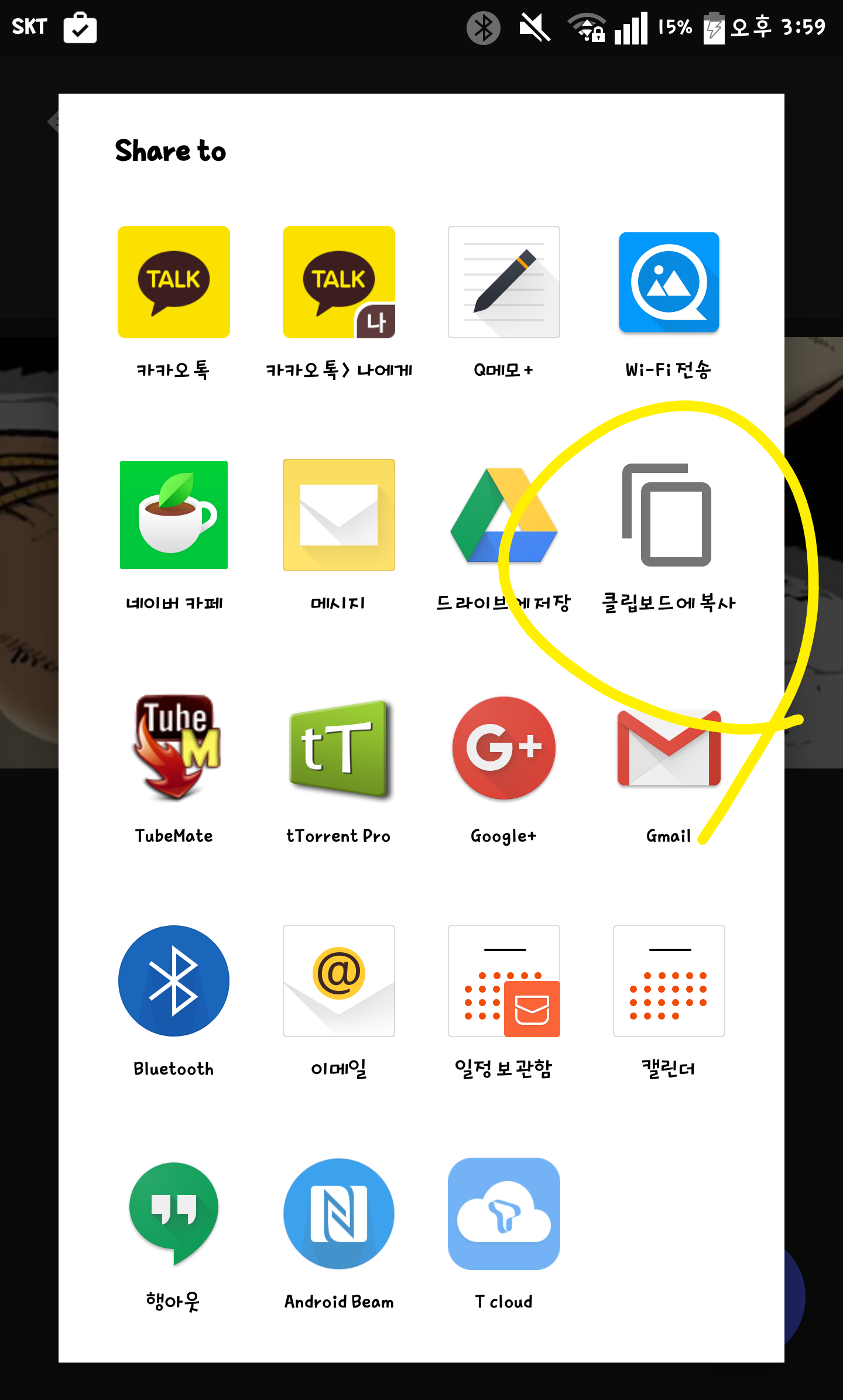쉐어 다이렉트 링크까진 나오는데 다음 클립복사가 안나와요...ㅠ