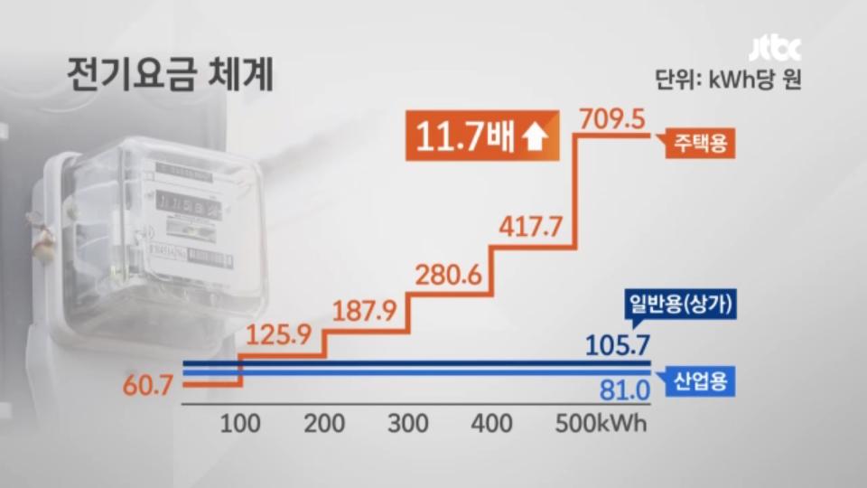 산업용 전기료는 누진제의 적용을 받지 않고 그마저도 여름철엔 깎아주기까지 합니다.