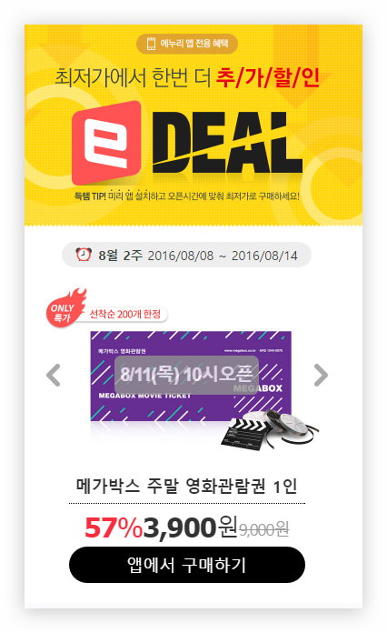 10시 에누리앱, 메가박스 영매권 선착순200개 하는군요