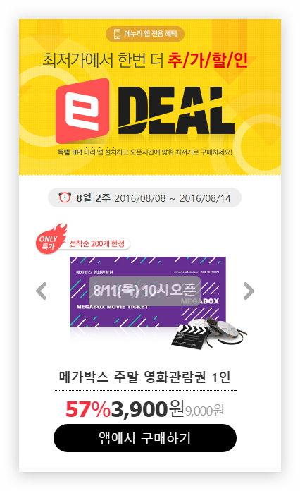 10시 에누리앱, 메가박스 영매권 선착순200개 하는군요 > 자유게시판