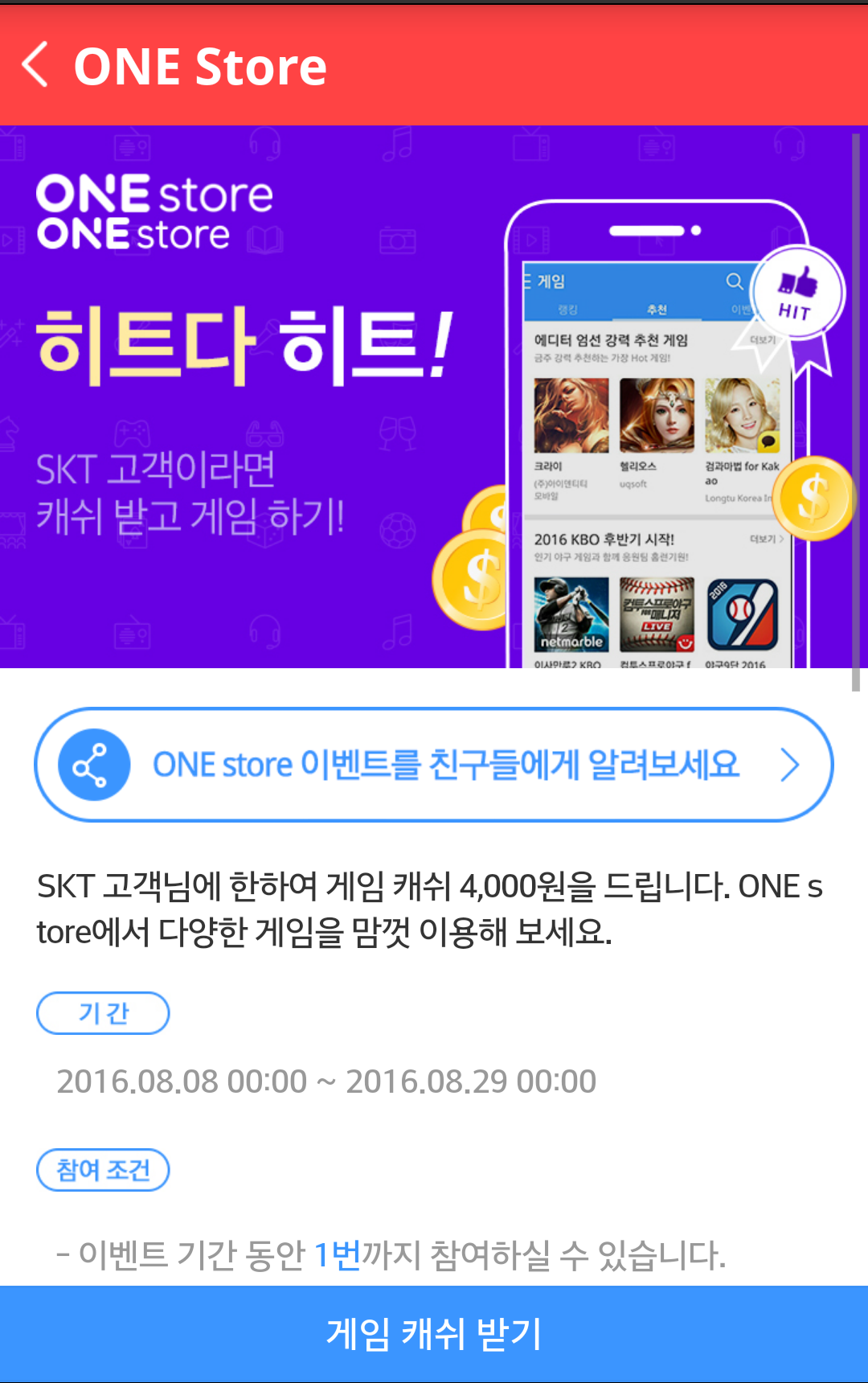 원스토어 게임 - 이벤트란에서 받으시면됩니다
