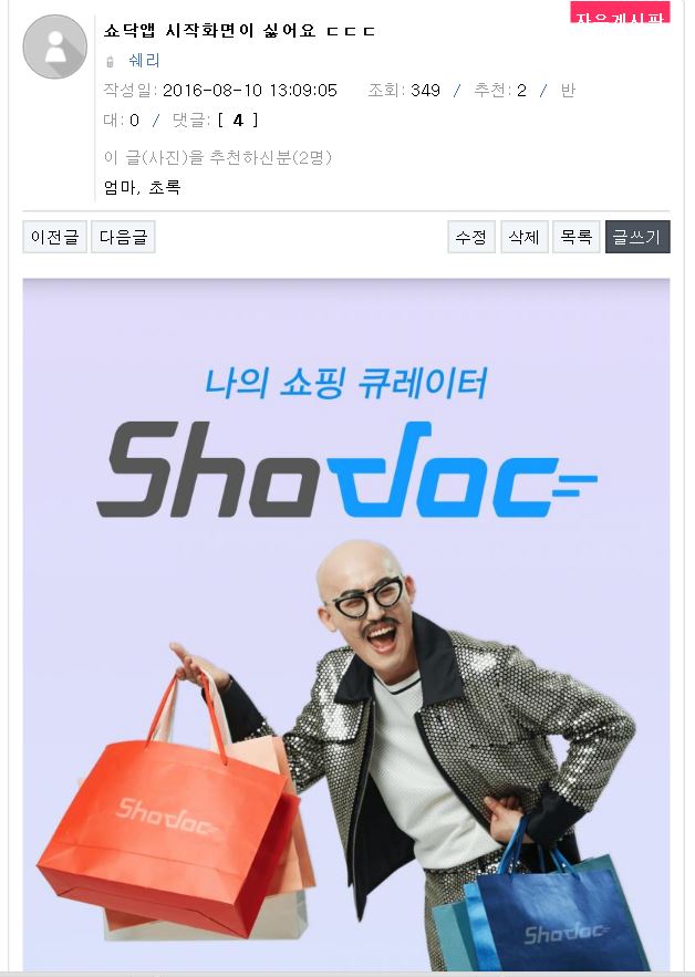 쇼닥앱 시작화면 싫다고 글썻었는데