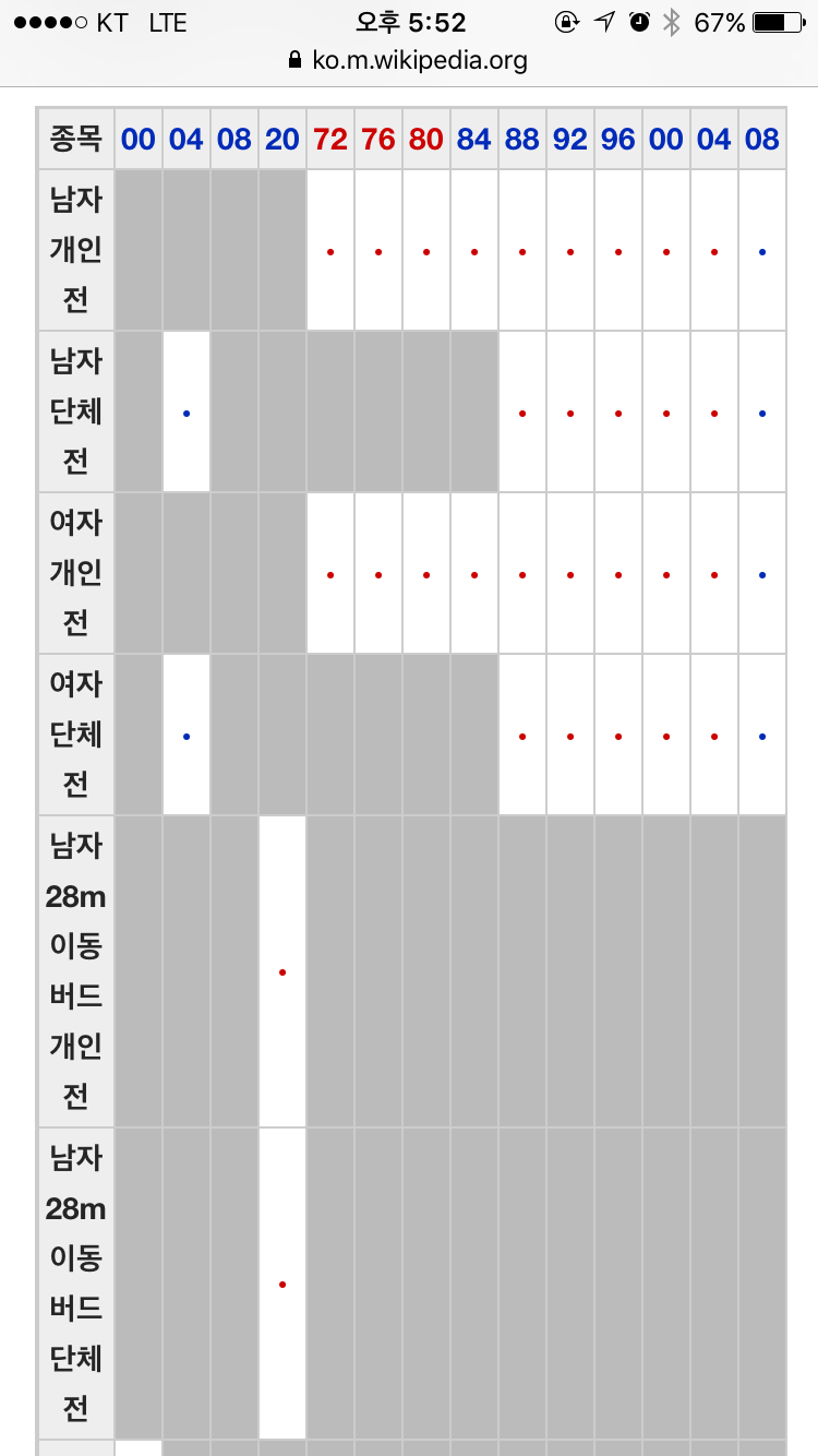 88올림픽때는...분명히 거리별로도 있었습니다...남, 여, 혼성까지...그 때 국딩 5학년 때인데 반 뒤편에...메달집계표에 스티커 붙이는데...양궁 칸이...최소한 지금보다는 많았던 것 같은데...88이 일시적인거였으려나요? (글 약간 수정...ㅎ) |