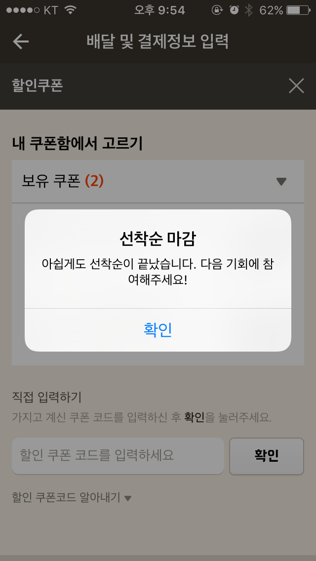 쿠폰 사용이 선착순이었다고 하네요.. |