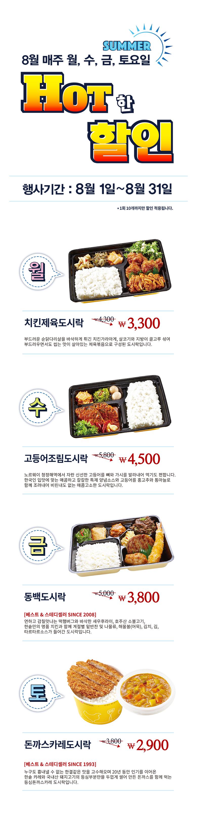 한솥 월 수 금 토 도시락 행사중이였네요.