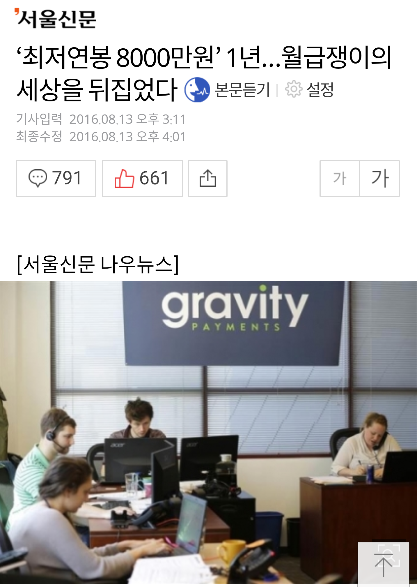 미국 신용카드 결제시스템회사인 '그래비티 페이먼트'의 CEO 댄 프라이스가 자신의 연봉을 삭감하고, 직원 120명 중 7만 달러 이하의 연봉을 받는 30명의 연봉을 자신과 같은 수준으로 올렸답니다.