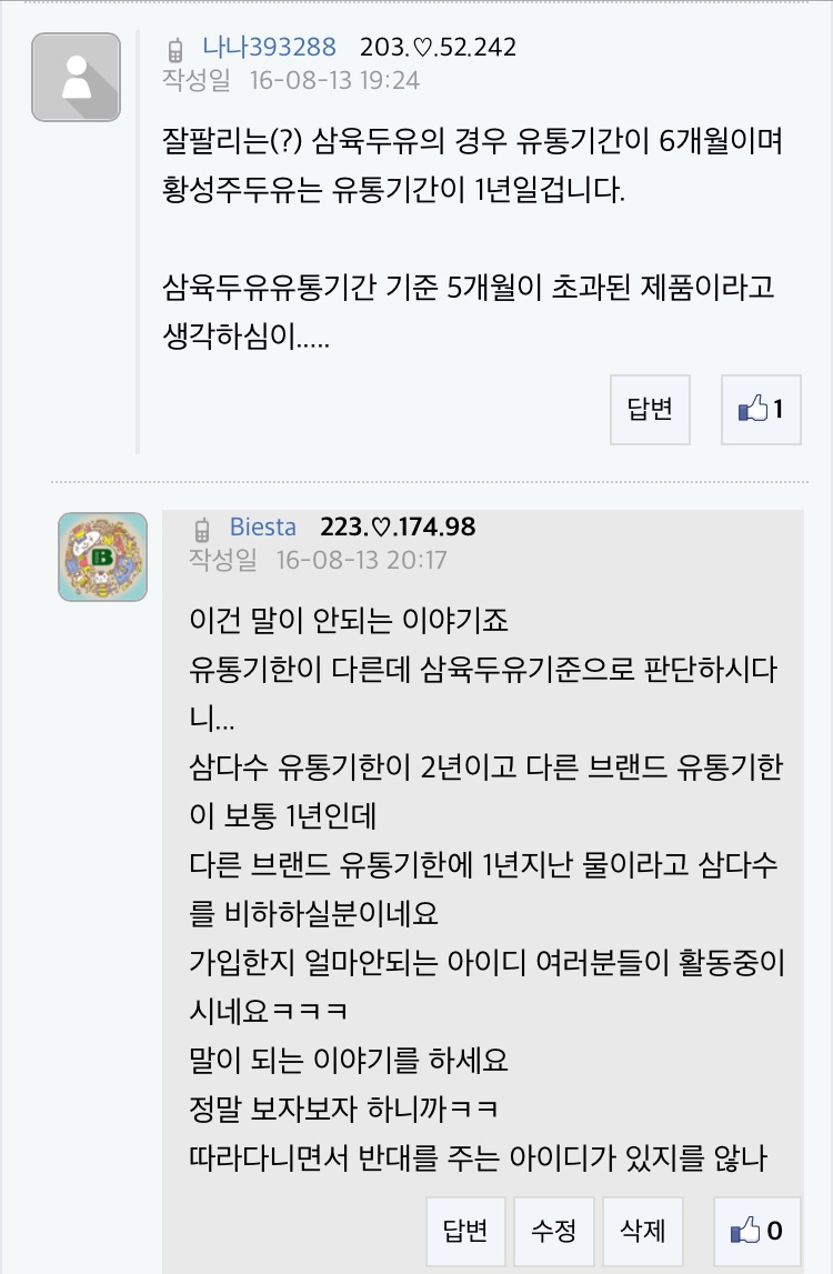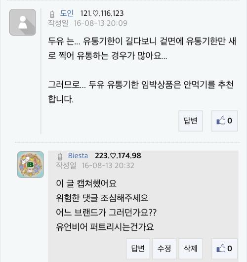 유통기한 리마킹이 얼마나 회사로서 위험한 짓인데 그걸 했다고 올리나요;; 이래서 카더라가 무섭습니다. | ||