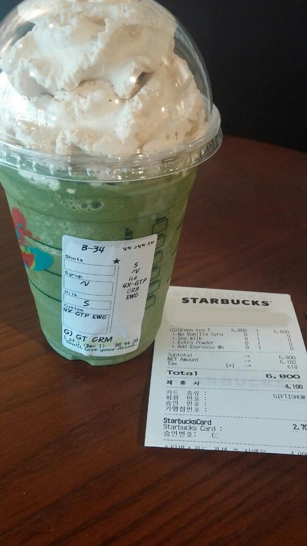 다음엔 샷 추가도 해봐야겠어요~ 그린티라떼 먹을땐 무조건 샷추가해서 먹는데 그것도 진리인듯해요 ㅎㅎ |