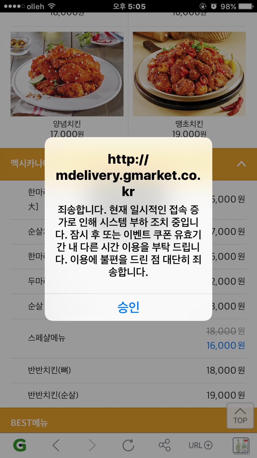 집에 꼬맹이 치킨 시켜줄려고 하는데, 이런 메세지가 ㅎㅎ