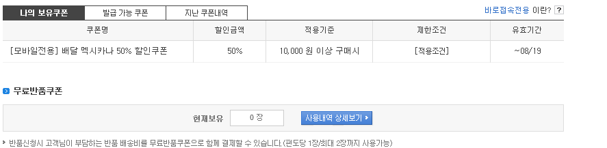 배민은 오늘 사용가능한 프로모션이라서 오늘 사용처리하고, 지마켓 멕시카나는 19일까지 사용가능해서 3일뒤에 치킨 먹으면되겠네요.^^