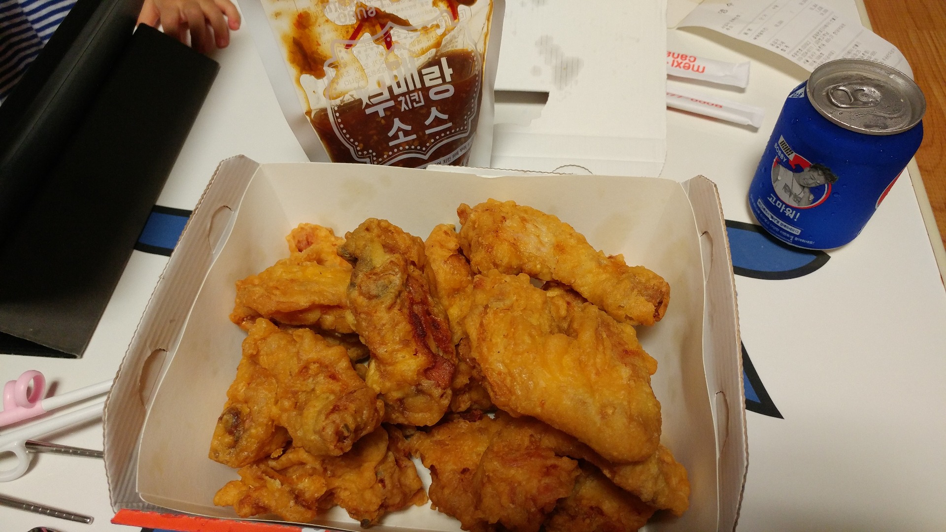 뭐 먹을까 고민하다가 부매랑 치킨을 시켰습니다.