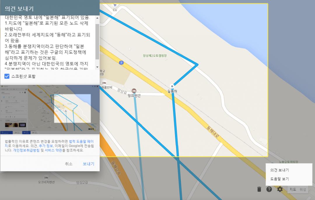 3.동해를 분쟁지역이라고 판단하여 "일본해"라고 표기하는 것은 구글의 지도정책에 심각하게 문제가 있어보임.