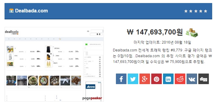 트래픽을 이용한 사이트 가치를 평가하는 건가보네요. 재미로 하기에 좋네요. ㅎㅎ |