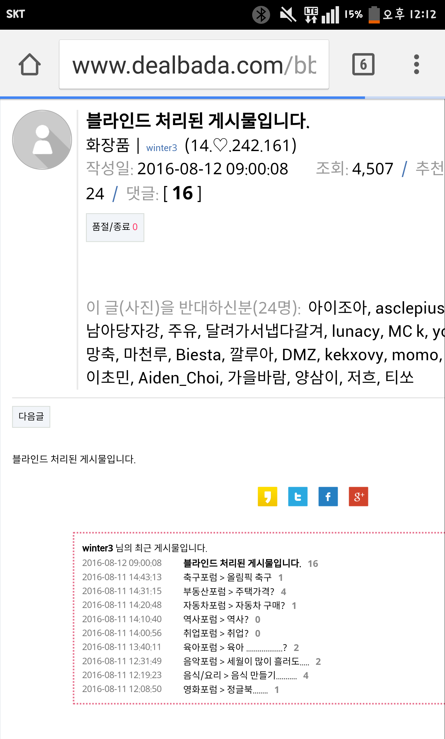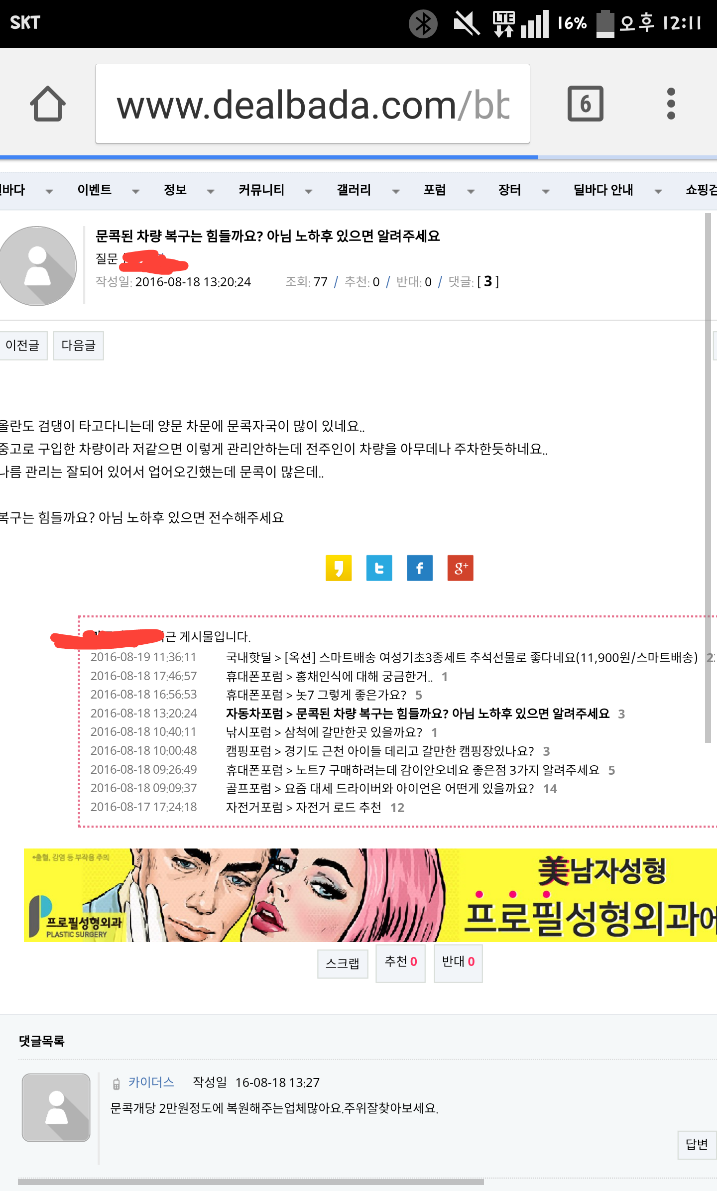 작성일: 2016-08-19 12:21:00 조회: 440  /  추천: 10  /  반대: 0  /  댓글: 12 ]