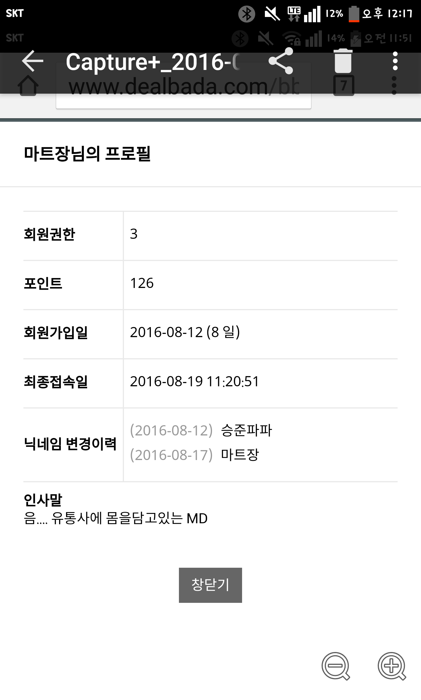 마트장 8월 12일 가입