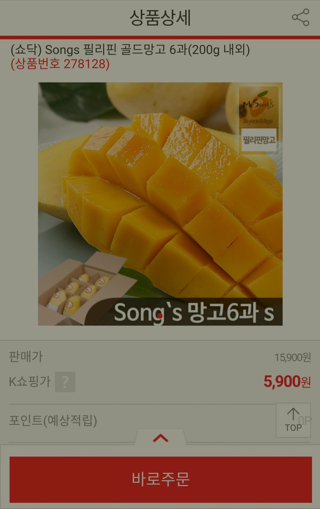쇼닥 k쇼핑에서 망고가 60% 할인가로 판매되고 있는데