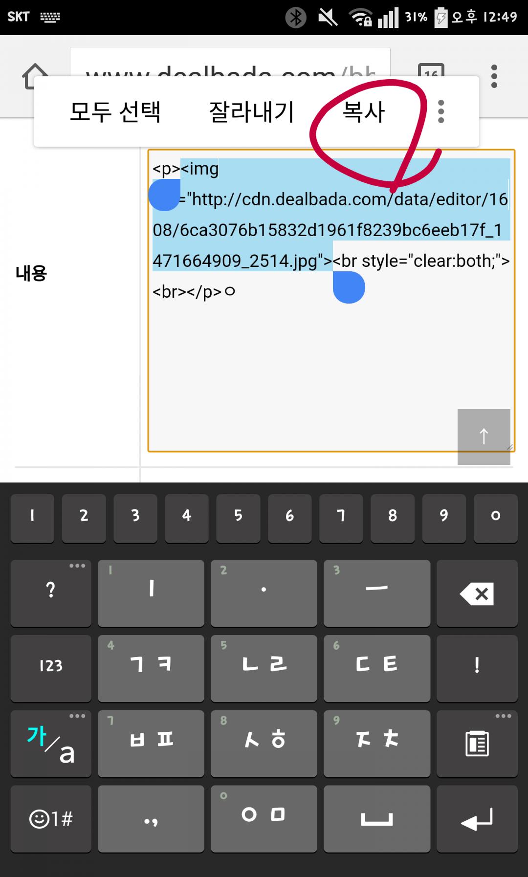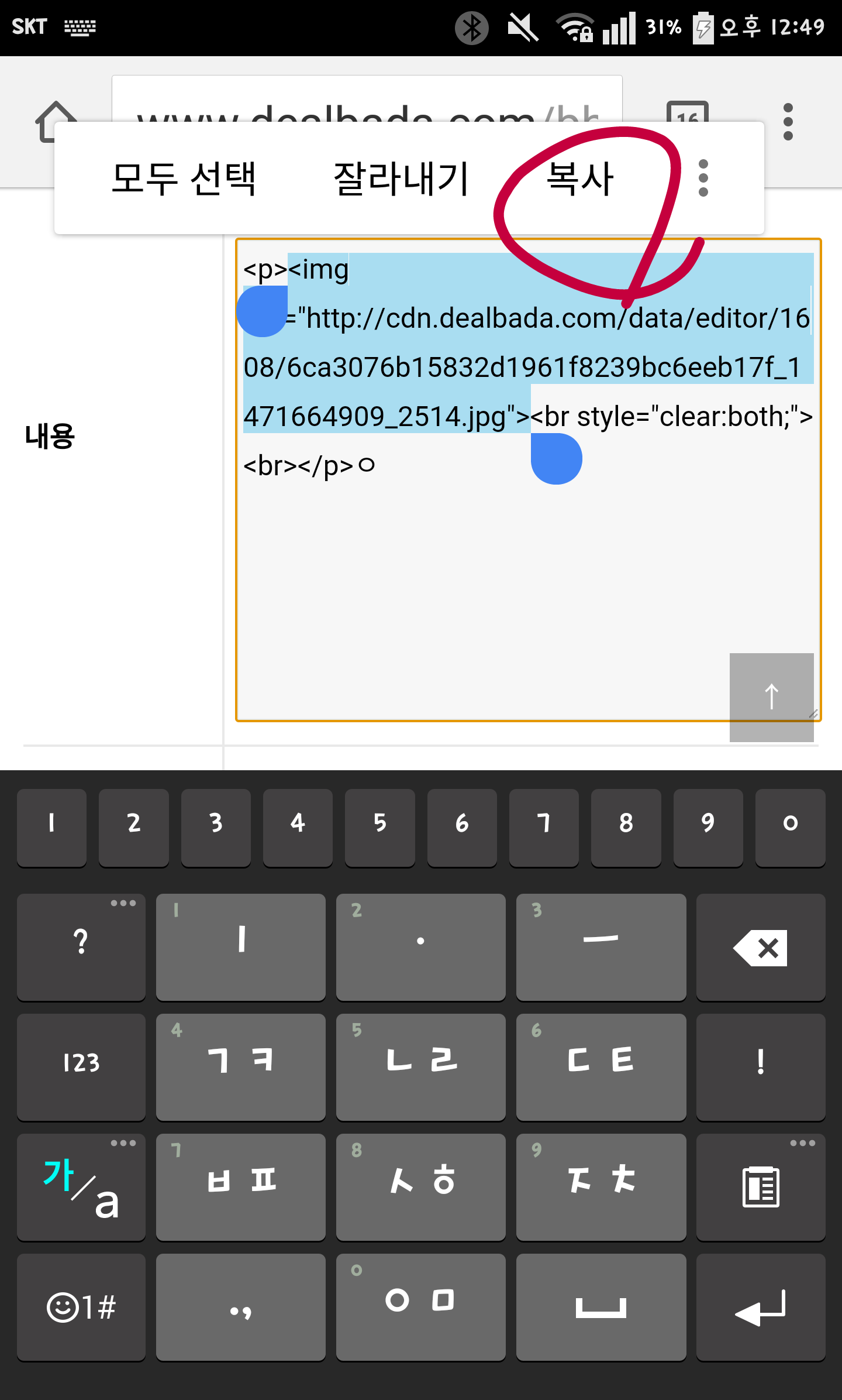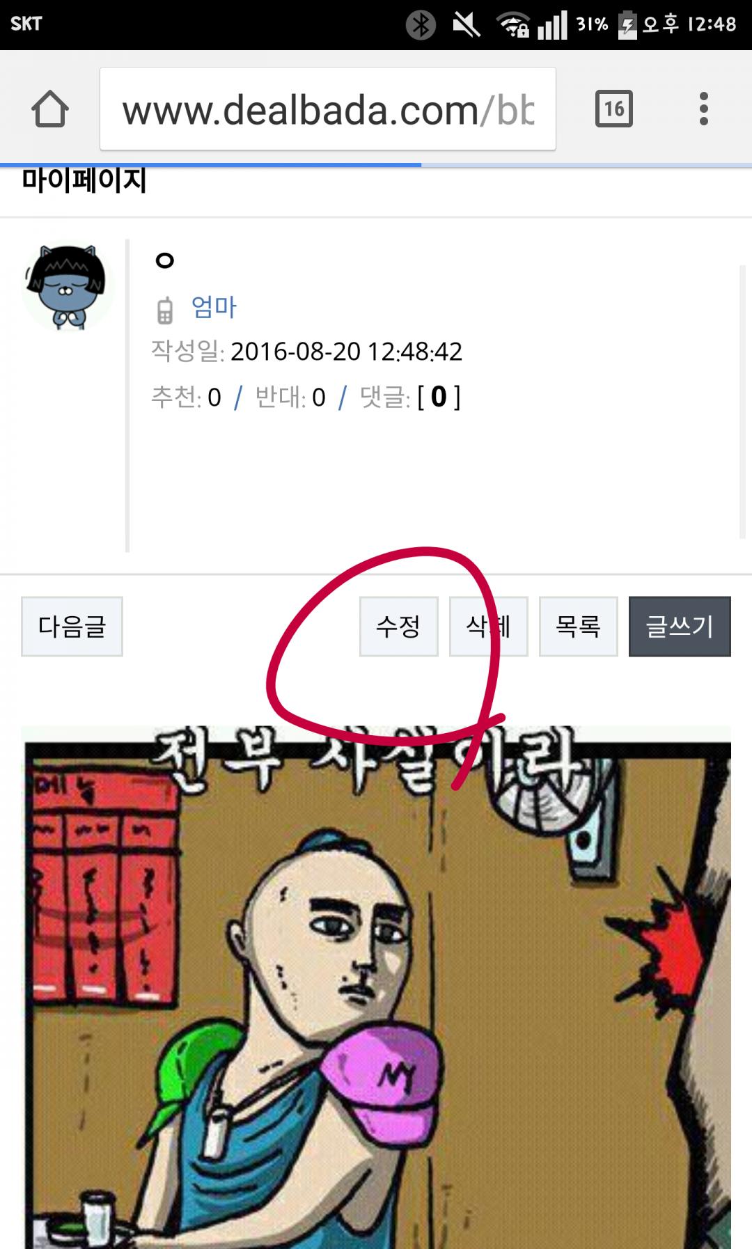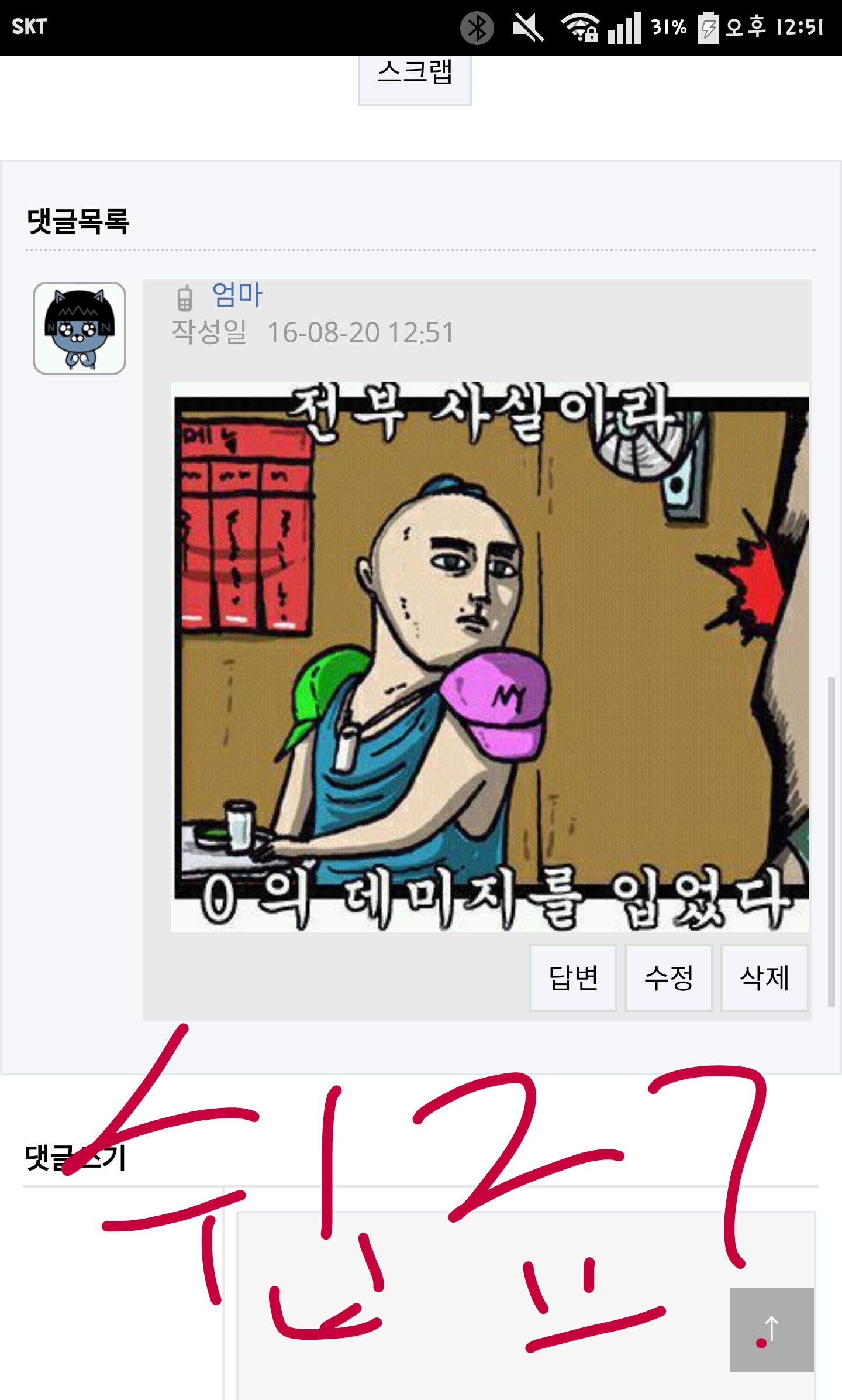 수정 잘라내기 복사 하셔서 댓글에 붙여넣기 말고