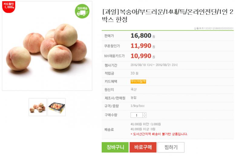 e-하나로 마트 온라인몰 오픈기념 이벤트제품 복숭아에요