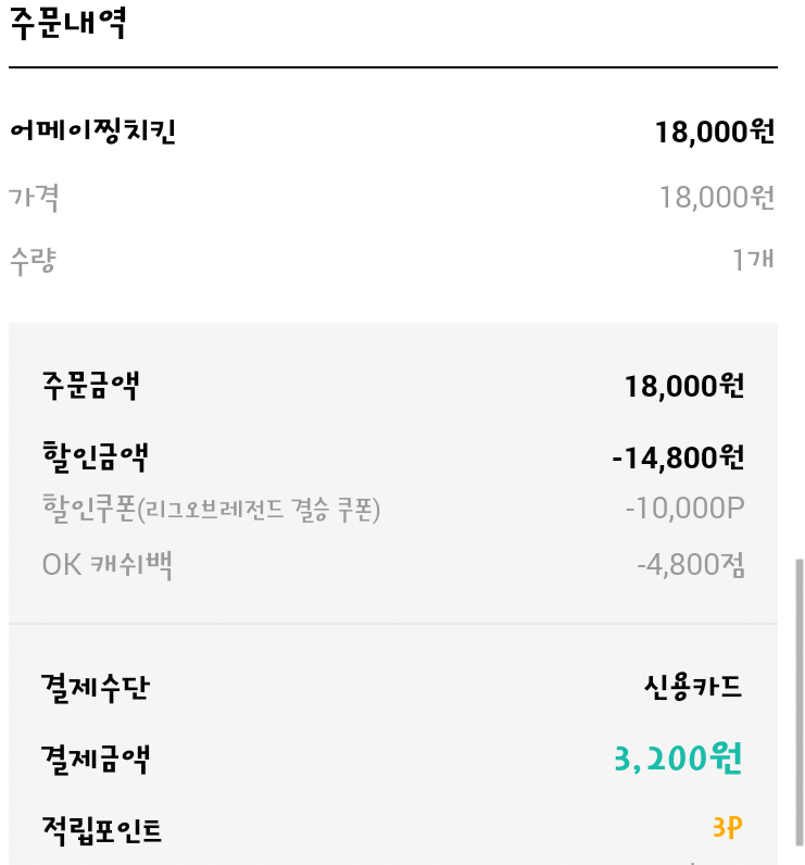 갈릭치킨 자주먹는데 어매이징치킨 새로나왔다길래 맛있나 싶어?...후기도 안보고 맛있을줄 알고 담부턴 먹던걸로 주문해야겠습니다