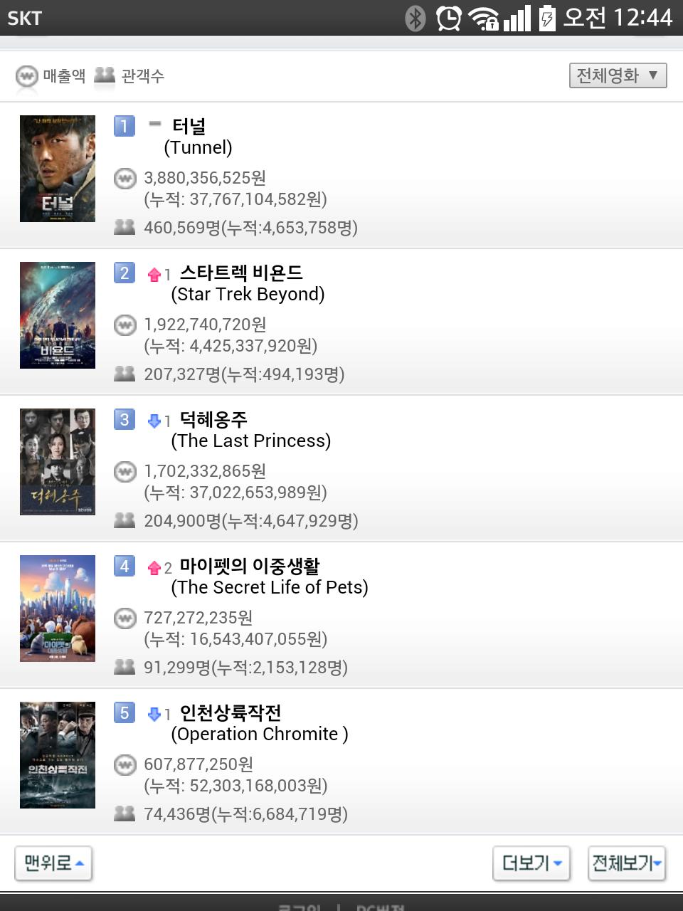 터널이 덕혜옹주 따라잡았네요.
