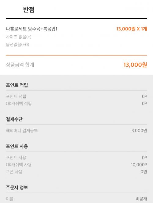 어제 받은 배달통 1만 + 모바일팝3천원으로 시켰어욤~