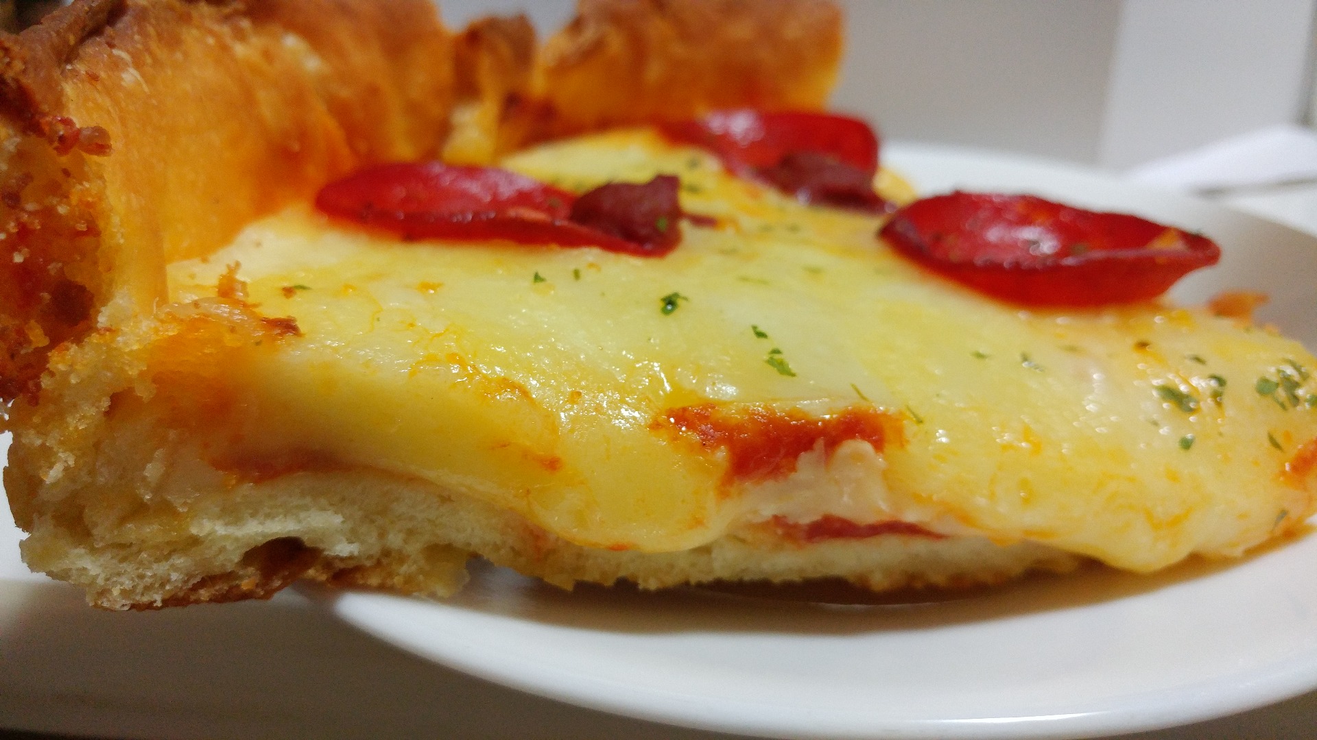 훨씬 두터웠습니다. 진짜 시카고 피자 먹는 맛이어서 즐겨 먹었습니다.