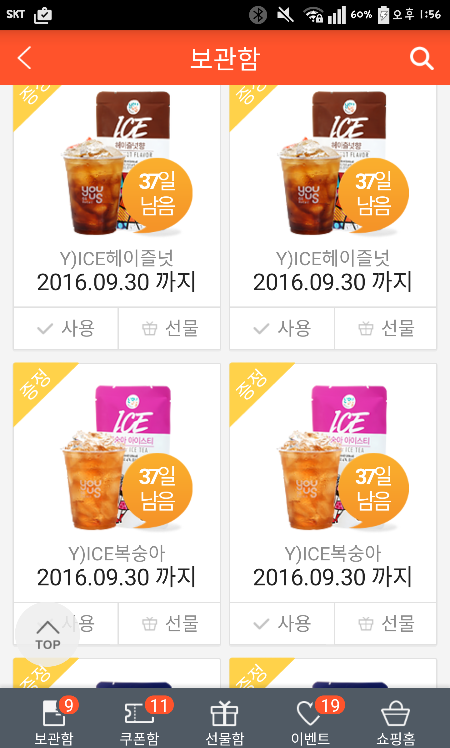 모바일 상품권으로 결제하고 적립+할인만 냉장고 어플로 해도 되긴 하는데 이벤트 응모는 불가합니다ㅠ 1+1이벤트는 팝카드로만 응모할 수 있어서 ㅠㅠ |
