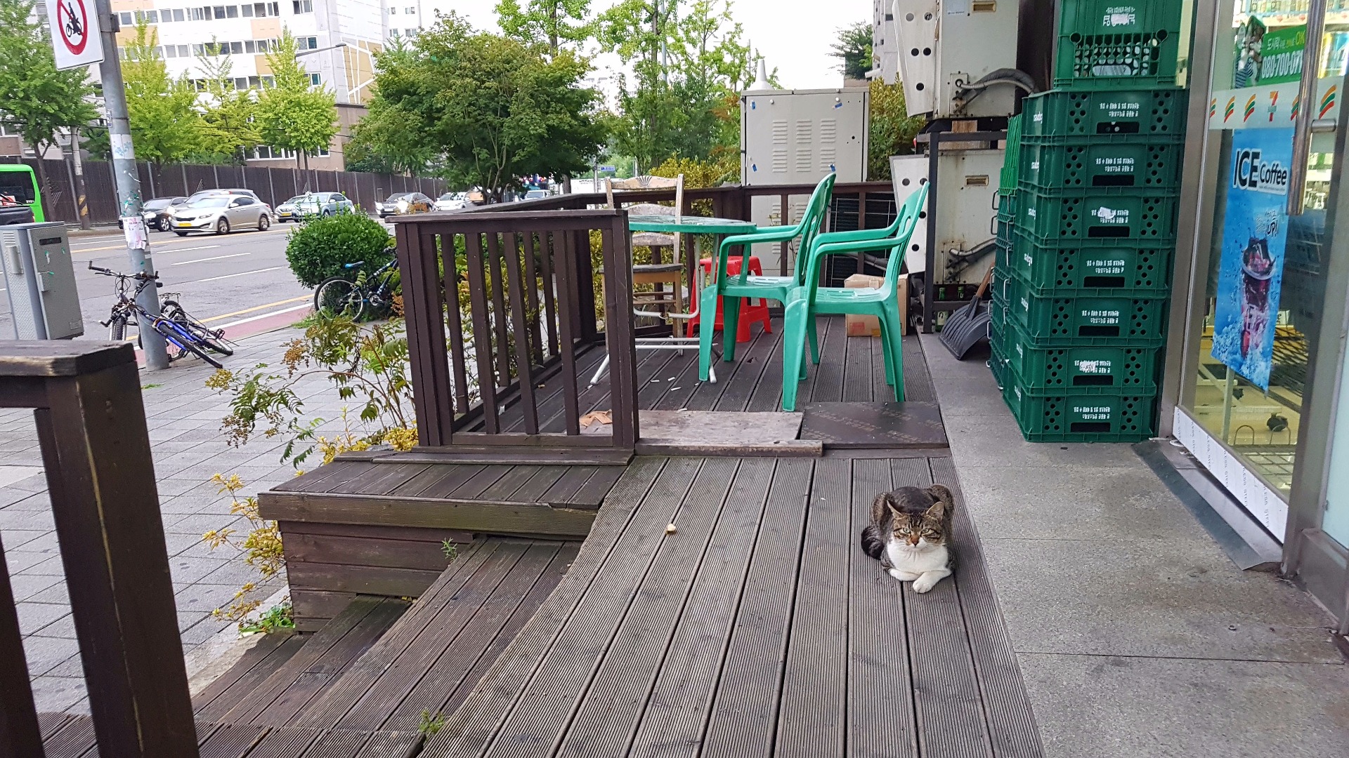 비를 피해 잠시 편의점 앞에서 쉬고있었는데