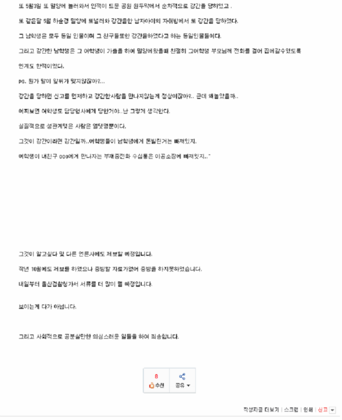 강간을 당하면 신고를 먼저하고 강간한 사람을 만나지 않는게 정상이라며 비정상으로 만들려하다니