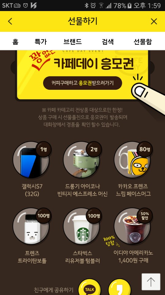 이디야 2800원 짜리 하나 사서 응모했더니..