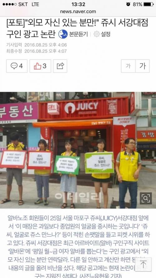 용모단정 이라고 모집하고 알아서 커트 했으면 될것을 너무 나갔죠