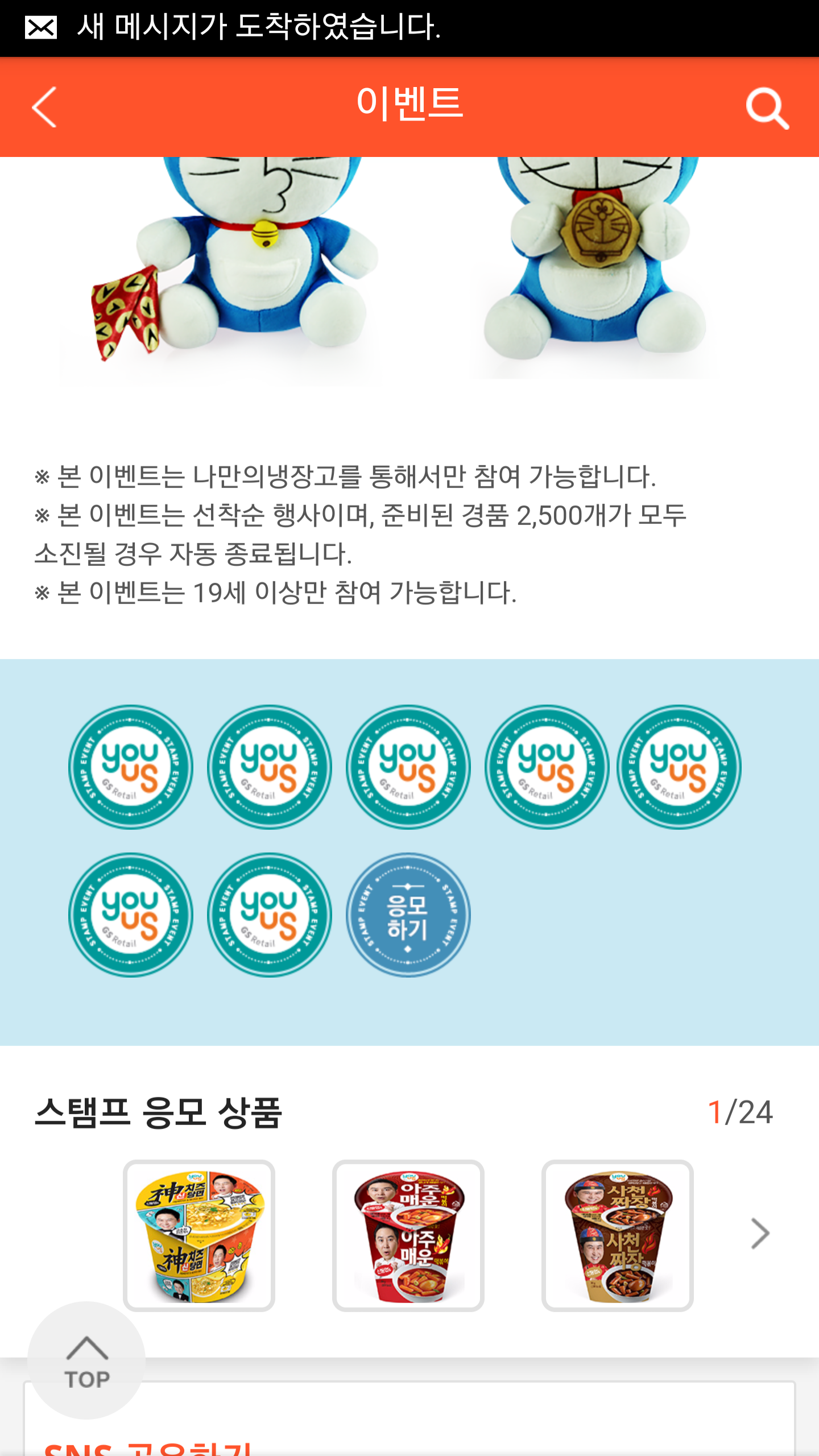 GS25 매장에서 유어스 상품 8개 구매후 적립하고 응모하시면 선착순으로 받을수 있어요.