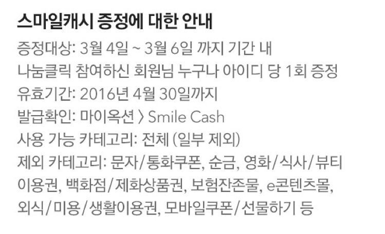 스마일 캐시 받았어요