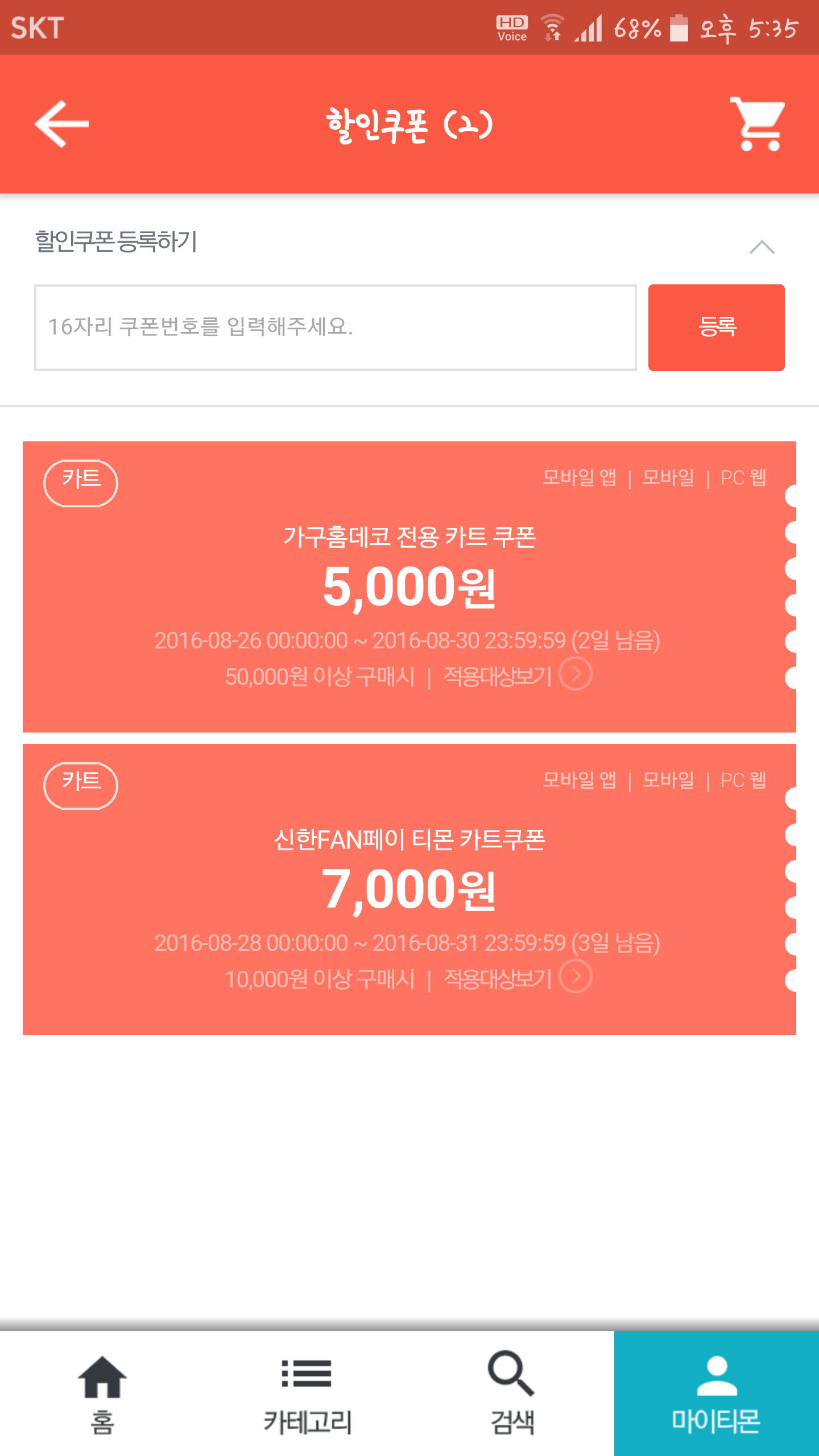 혹시나 해서 들어가 봤더니 역시나 이상한 쿠폰들만 잔뜩 있네요 ㅠㅠ |