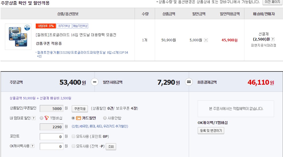 11번가에서 이번달까지 2.5만원이상 신한카드로 결제할만한거 찾다가 나중에 쓸수있는 면도날 찾아봤는데요.