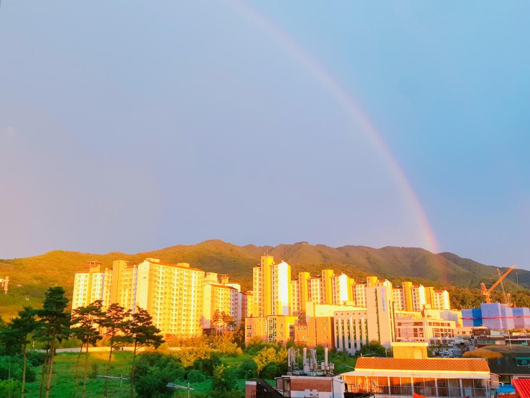 어떻게 무지개 안하고 밖이 하늘색이 다르죠?