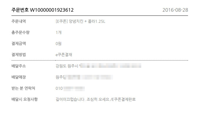 부모님이 양념치킨밖에없다고 좀그러셨지만