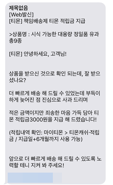 배송지연 보상 상품인지 아닌지 한번 보고 물어보세요~ |