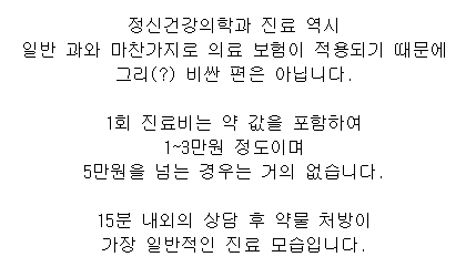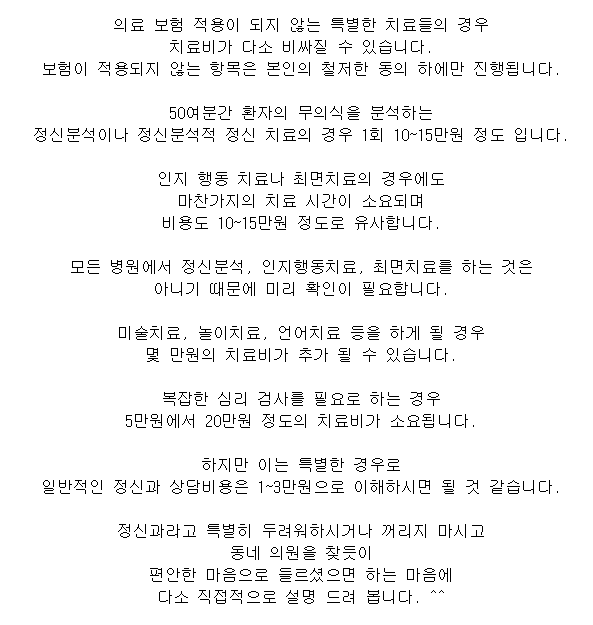 정신과 진료 기록이 있으면 보험 가입할때 상당한 지장이 생기더군요 ㄷㄷ;; |