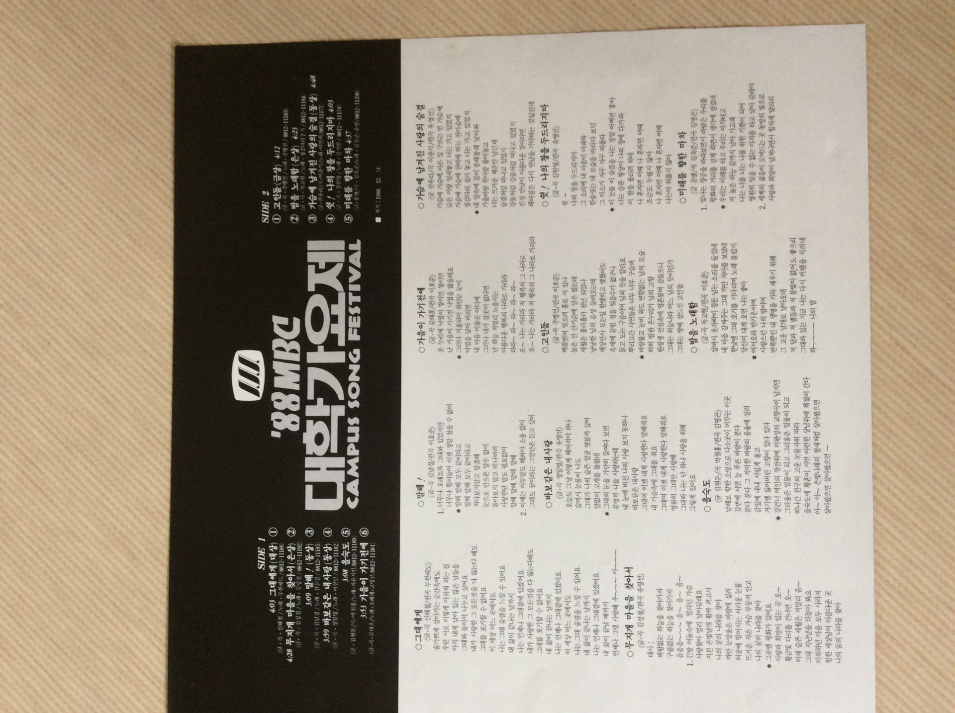 네..ㅎㅎ 응팔 보면서 저때 대학가요제 앨범이 있나 없나 긴가민가했는데 있네요...